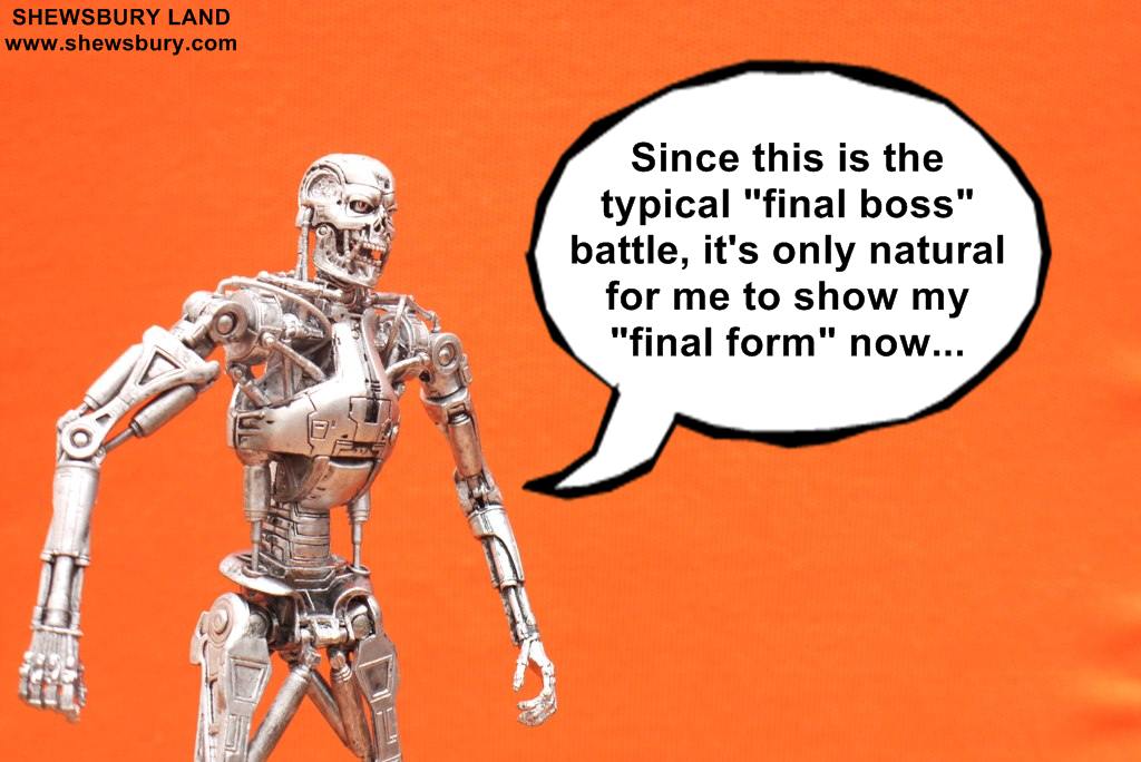 And suddenly the Vespa "transformed" into the metal skeleton.... it's the boss of the bad guys;